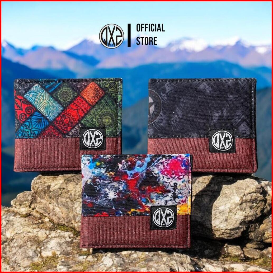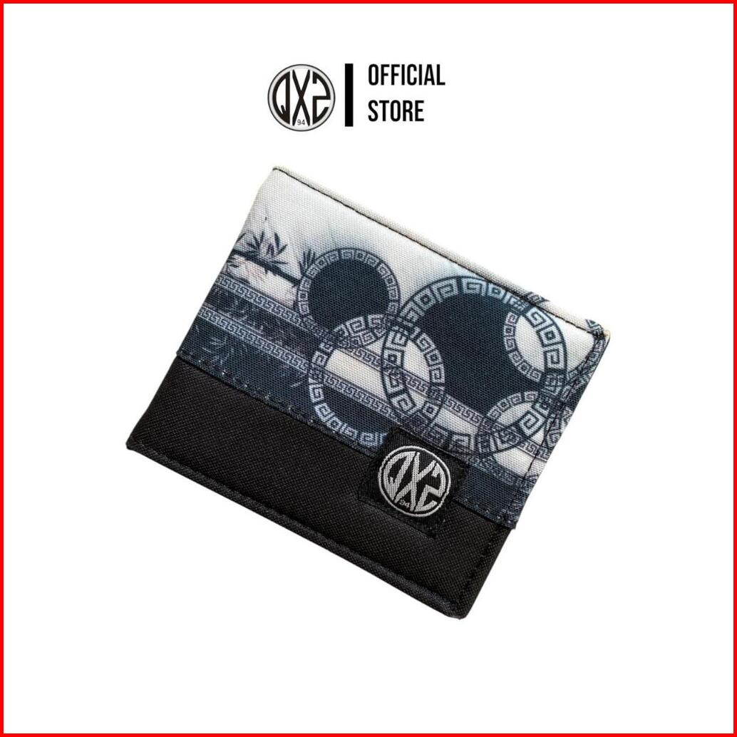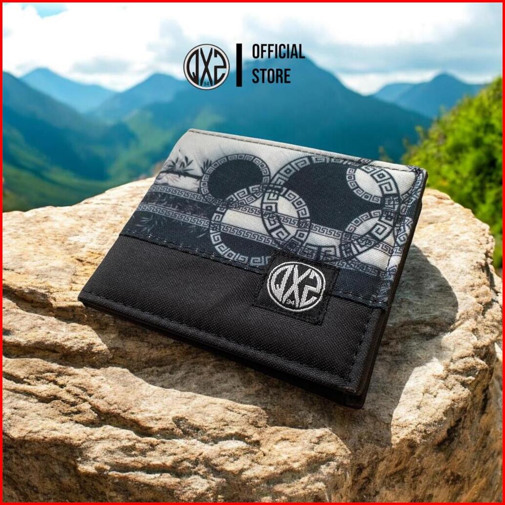 Qxz94 Dompet Pria Kulit Kanvas Motif Pendek Lipat Kartu Uang Tipis Polos Kombinasi Hitam Geometris