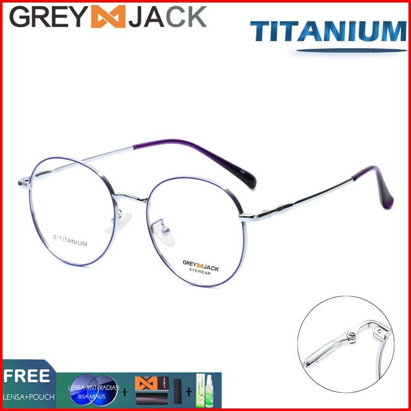 Grey Jack Frame Kacamata Titanium Bulat Ringan Bisa Minus Antiradiasi Blueray Photocromic Bluecromic Terbaru 8907