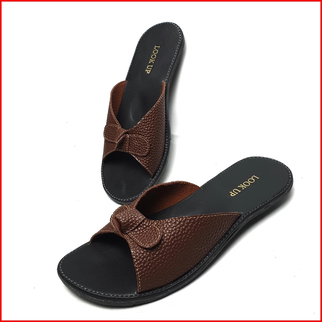 Gisel Lookupshoes Sandal Kulit Wanita Sandal Kokop Pita Papirut Teplek Anti Slip Series