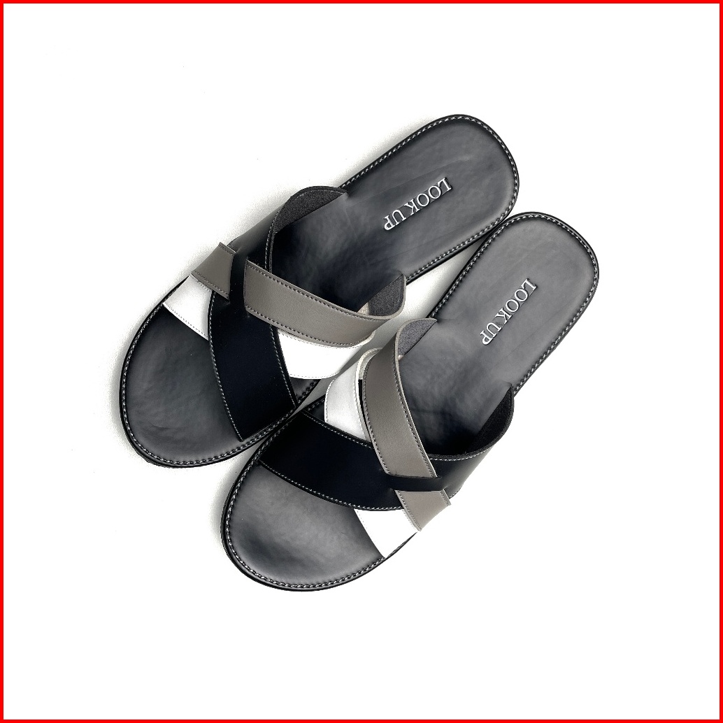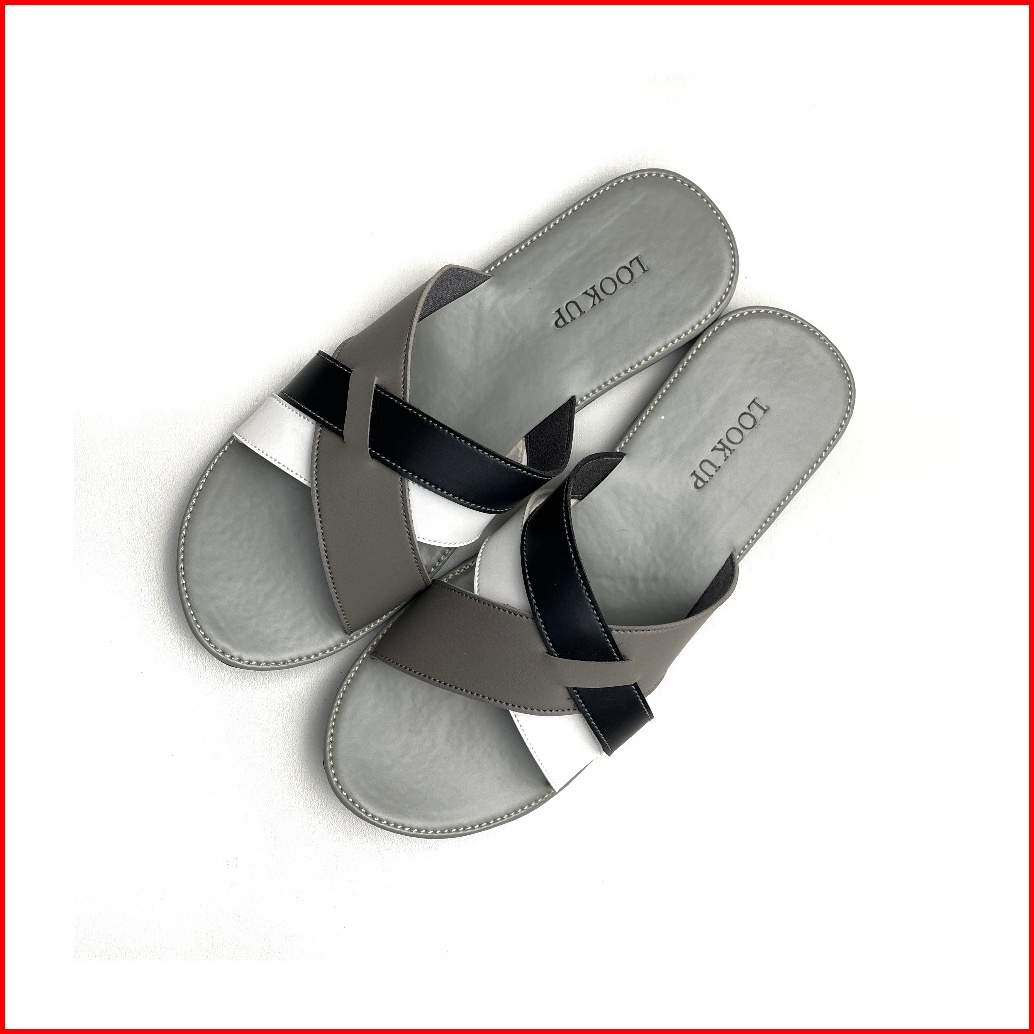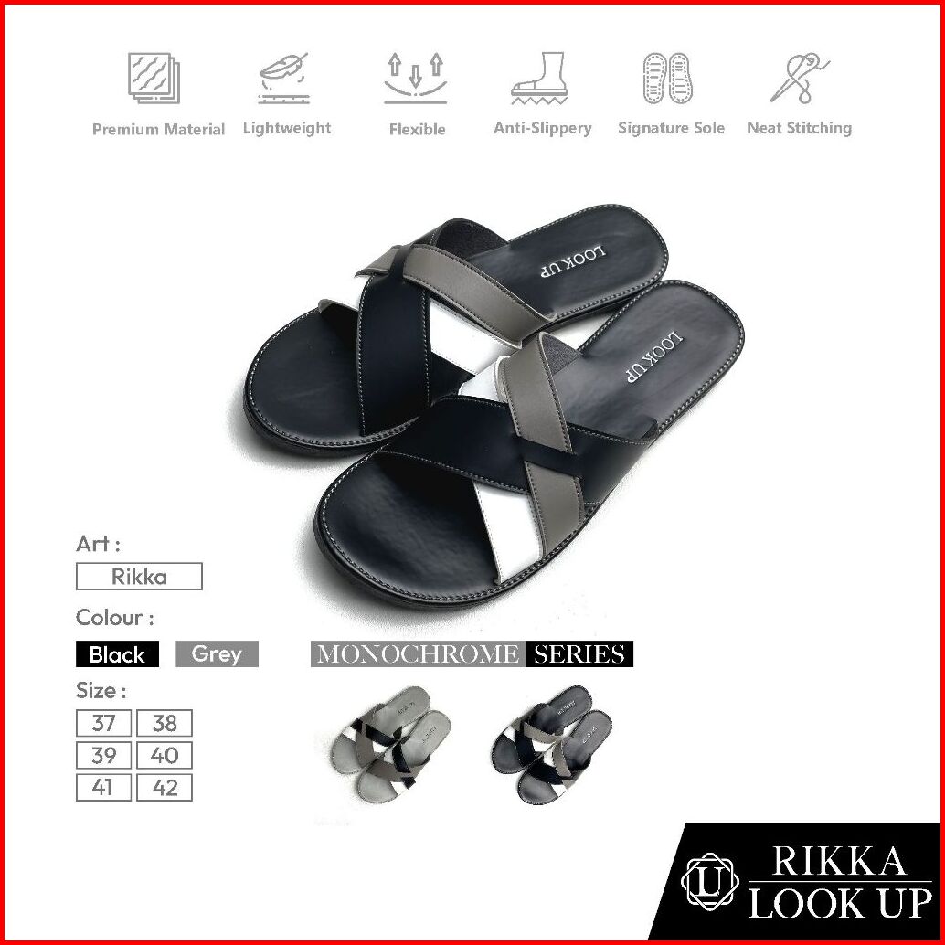 Rikka Monochrome Lookupshoes Sandal Wanita Slop Kokop Slide Slip On Anti Licin Sol Karet Teplek Motif Hitam Abu Kombinas