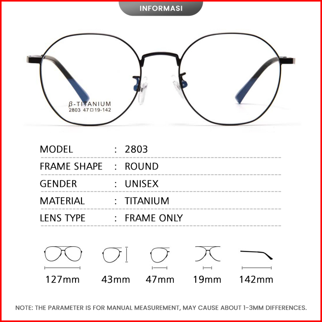 Loho Kacamata Titanium Anti Radiasi Photocromic Bluecromic Minus Anti Blueray Frame Bulat Fashion Pria Wanita 2803
