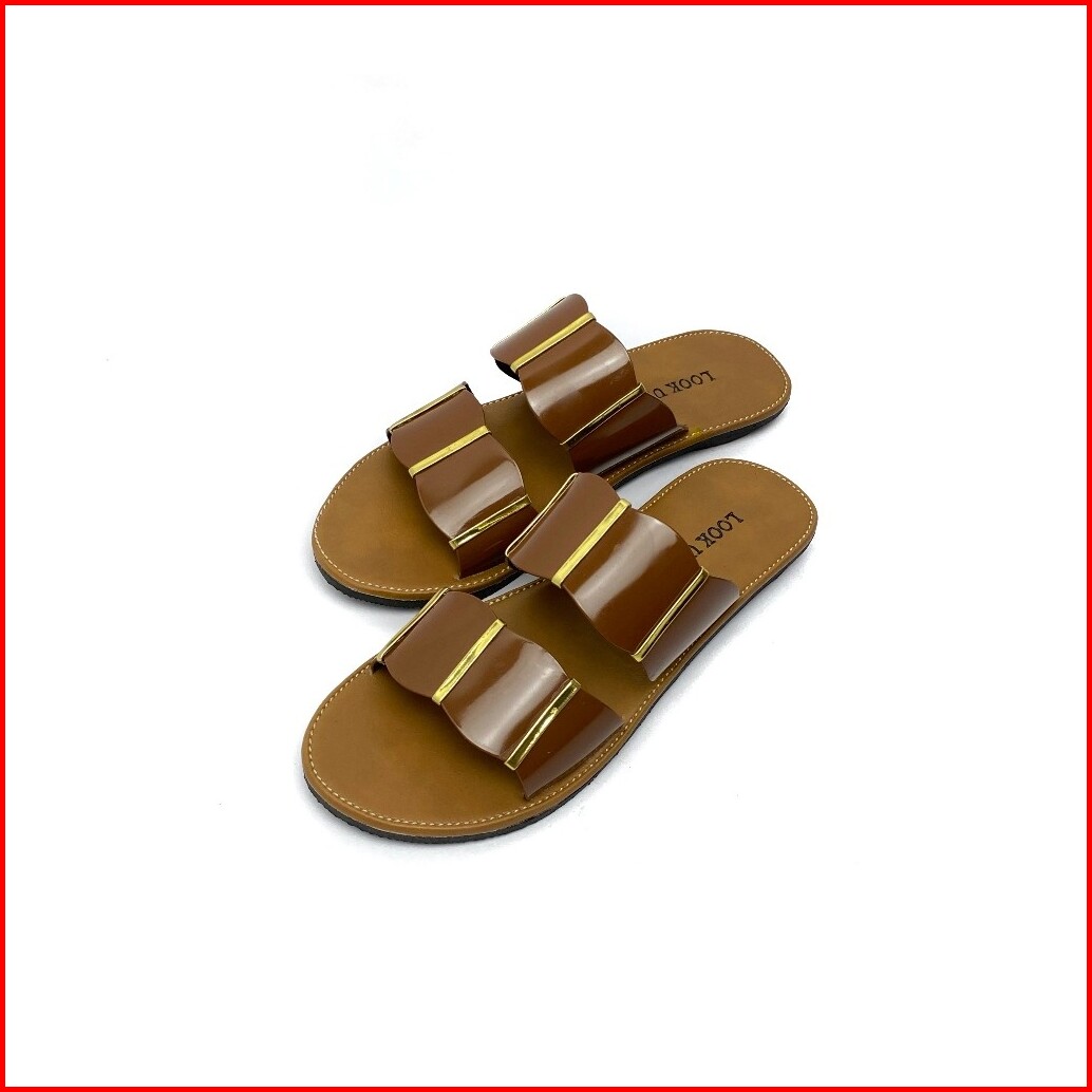 Lanna Lookupshoes Sandal Selop Glossy Wanita Model Ban Dua Korean Style Empuk Kulit Sintetis Sol Karet Anti Licin Sandal