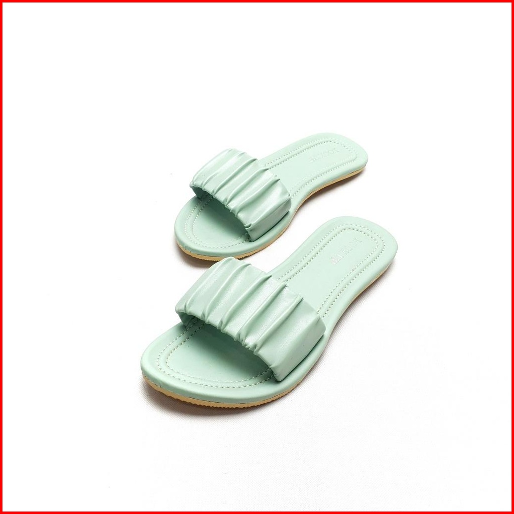 Widuria Lookupshoes Sandal Kulit Wanita Flat Teplek Slip On Paster Color Mocca Ruffle Flat Series Karet Sendal