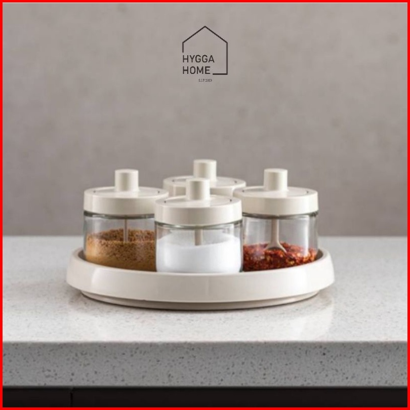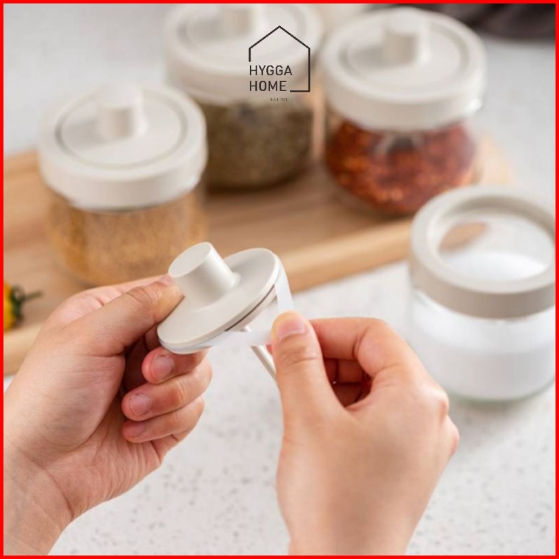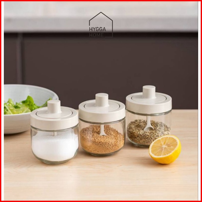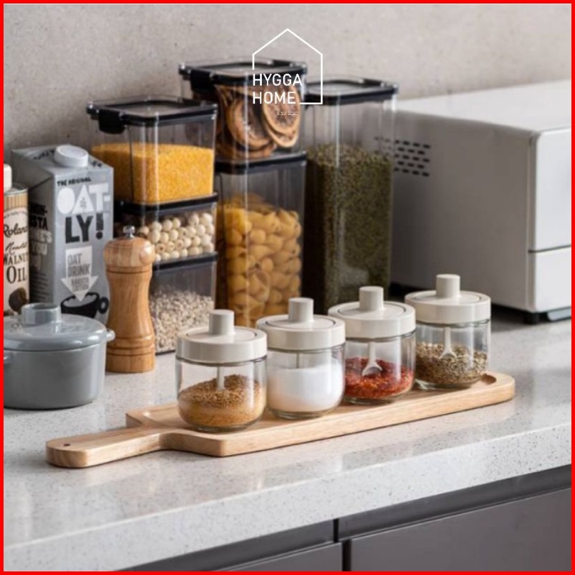 Hygga Home Ryo Seasoning Pot Tempat Bumbu Dapur Kaca Dengan Tutup Sendok Kuas Stik Madu Estetik