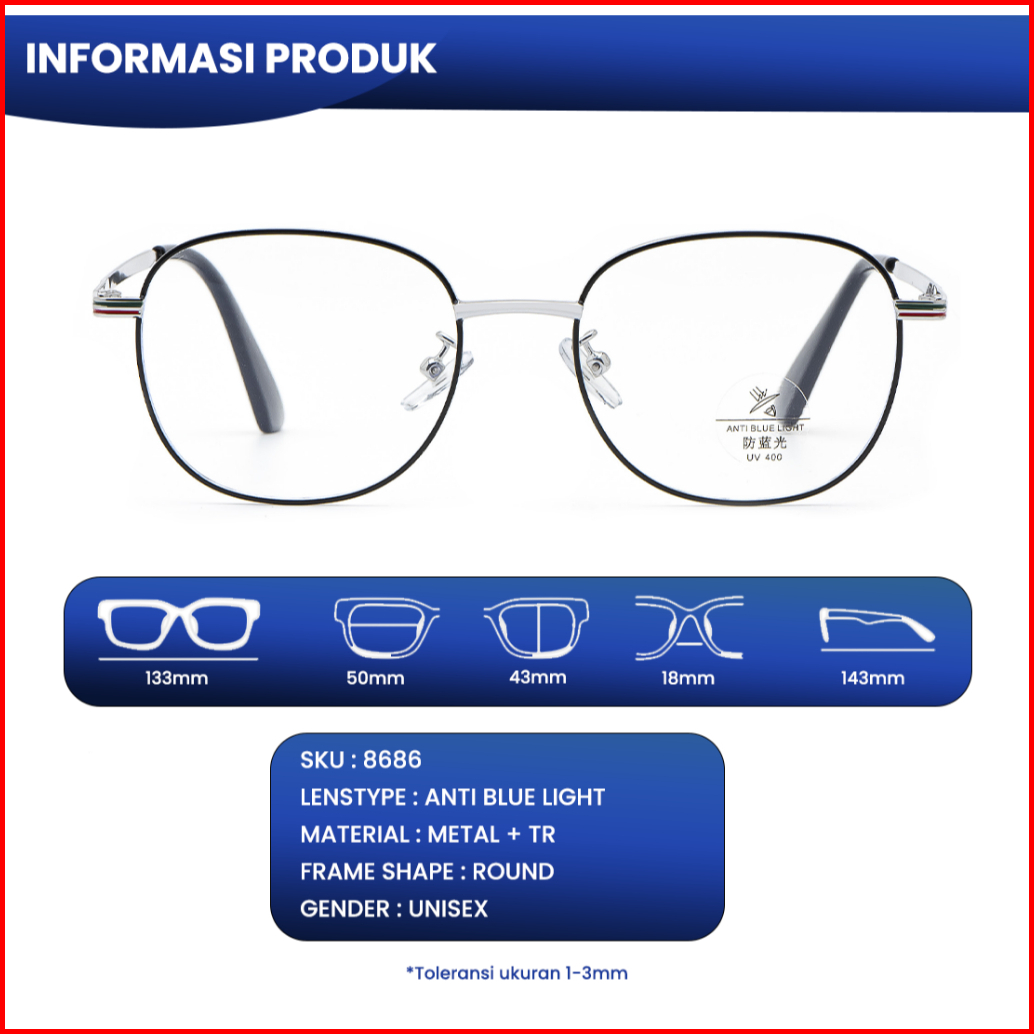 Iooi Kacamata Bulat Fashion Photocromic Anti Radiasi Blueray Bisa Minus Normal Metal Tr 8686