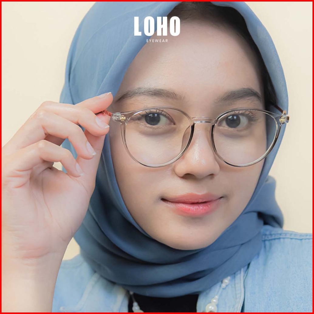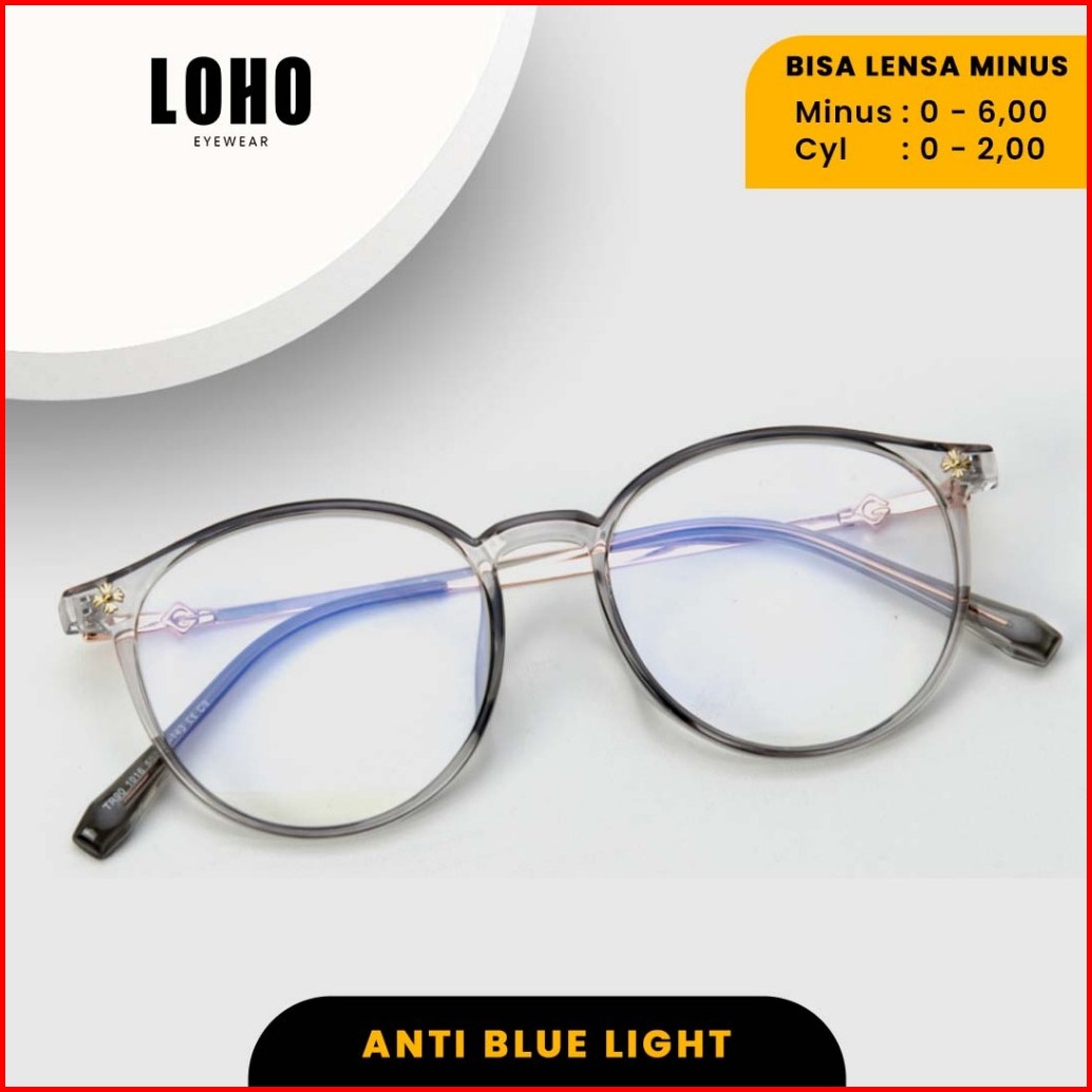 Loho Kacamata Anti Radiasi Photocromic Bluecromic Minus Anti Blueray Frame Bulat Fashion Pria Wanita 1016