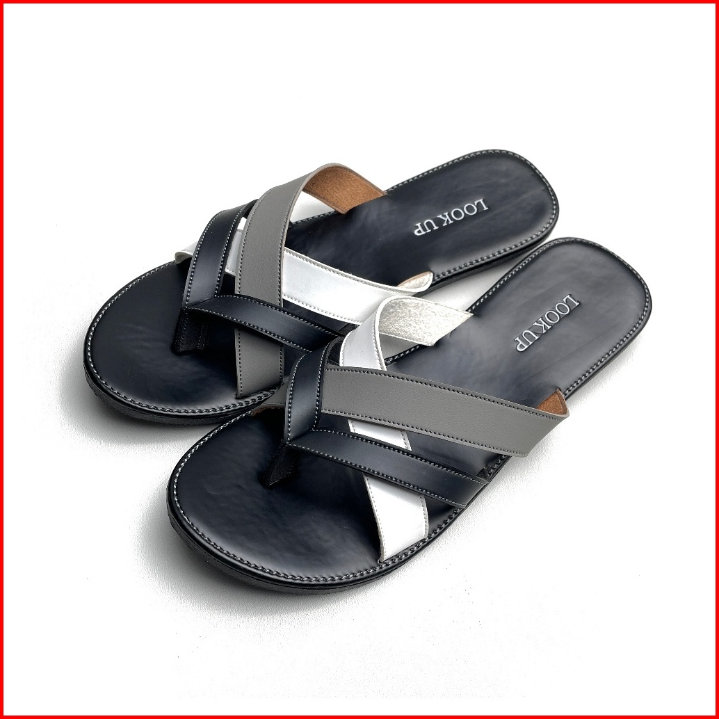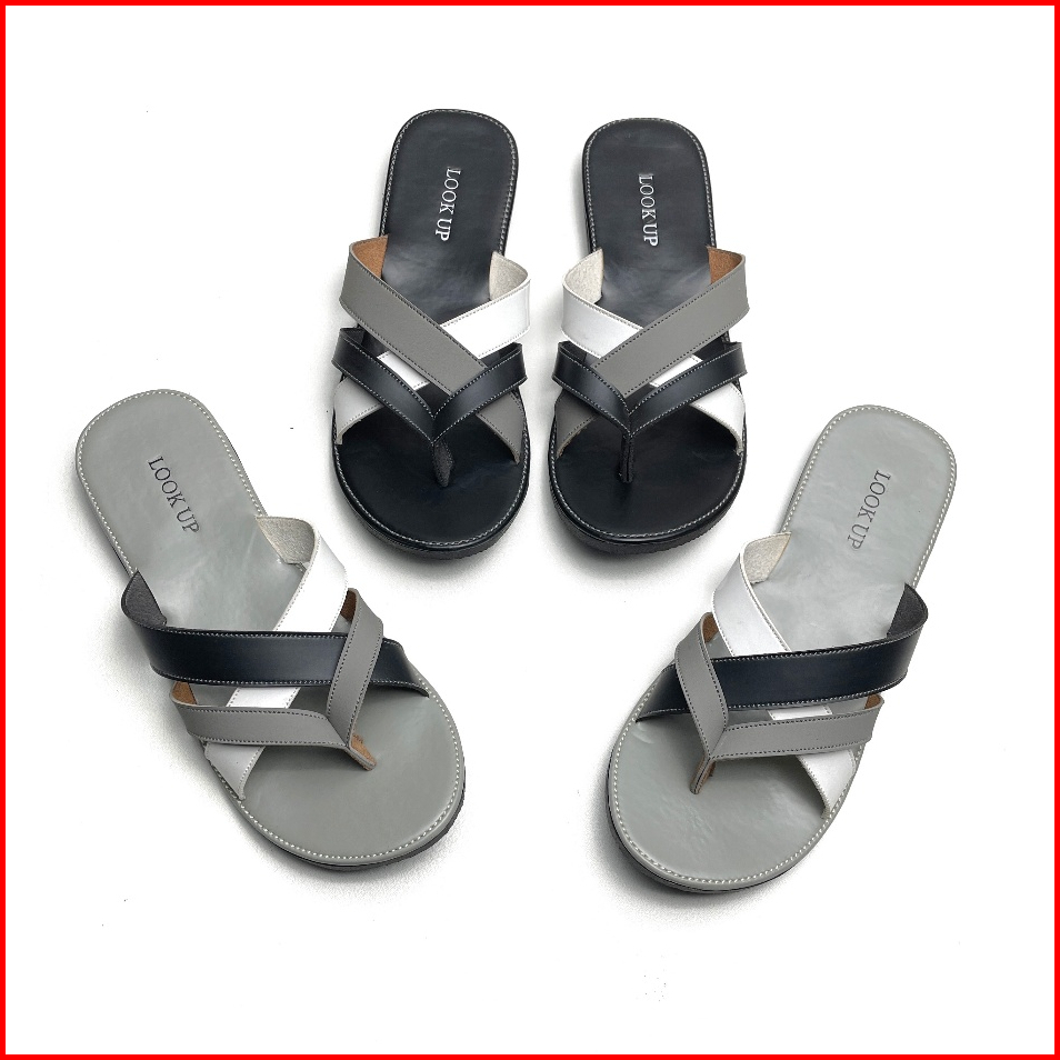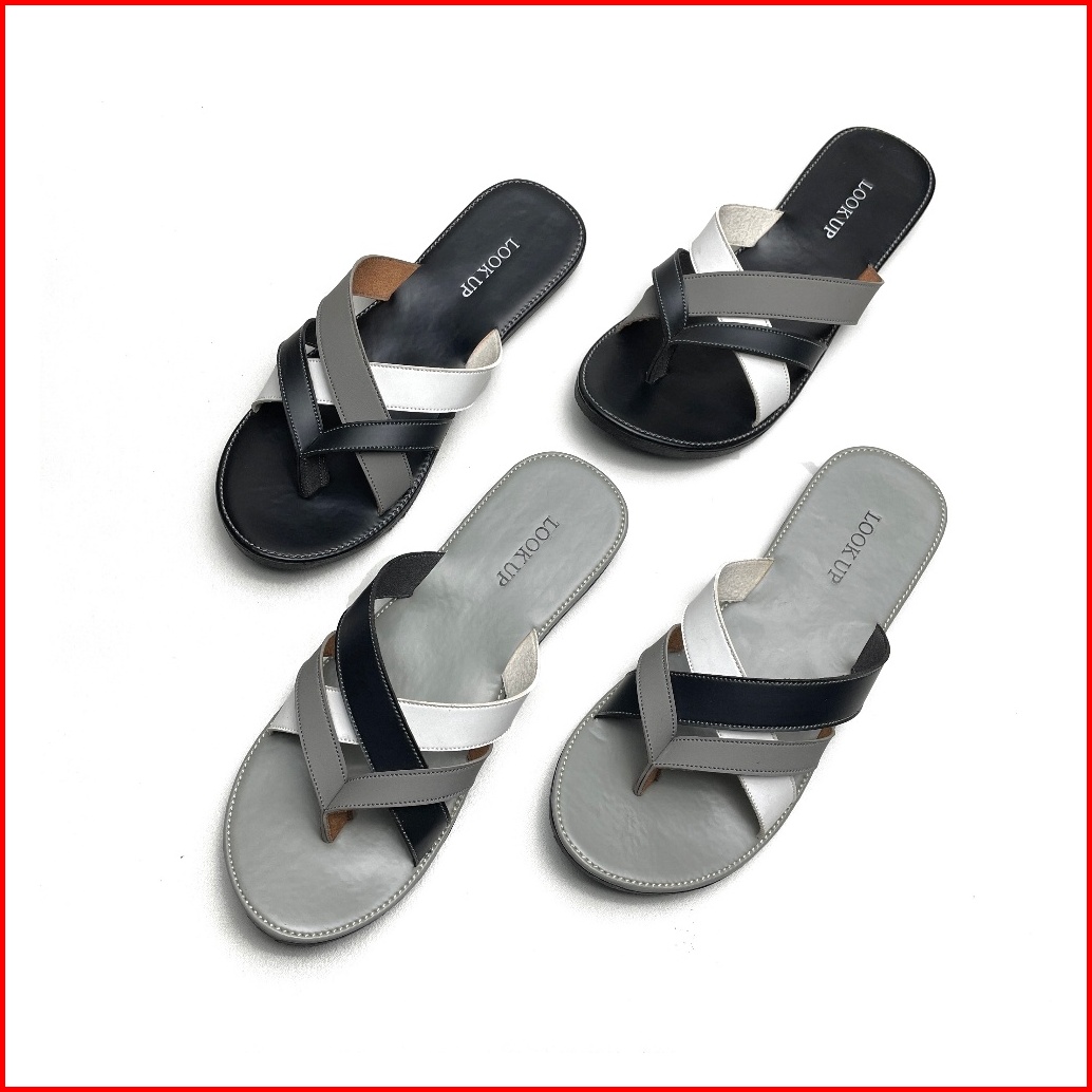 Clara Monochrome Lookupshoes Sandal Wanita Model Jepit Sandal Jepit Anti Licin Sol Karet Teplek Hitam Abu Motif Kombinas