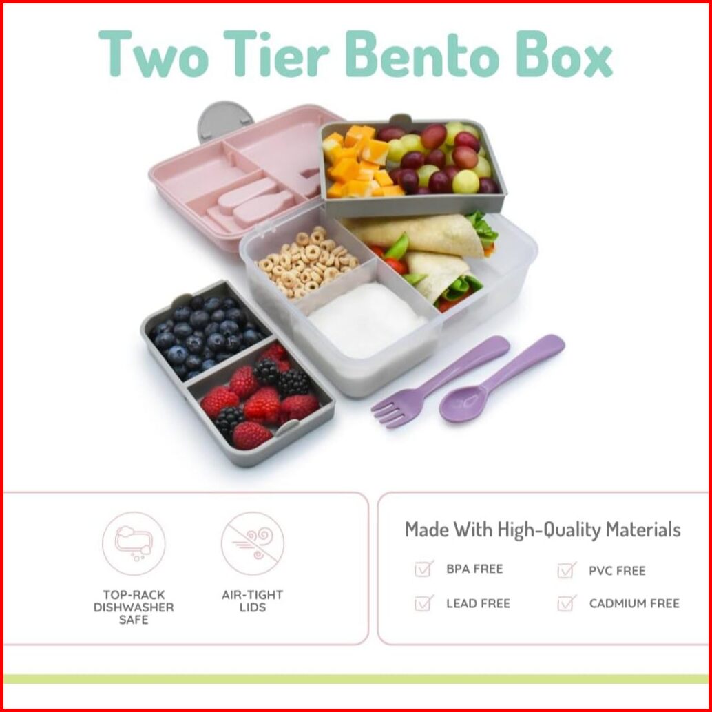 Melii Baby 2 Tier Bento Lunch Box - Set Kotak Makan Bento Dan Alat Makan Premium Bpa Free