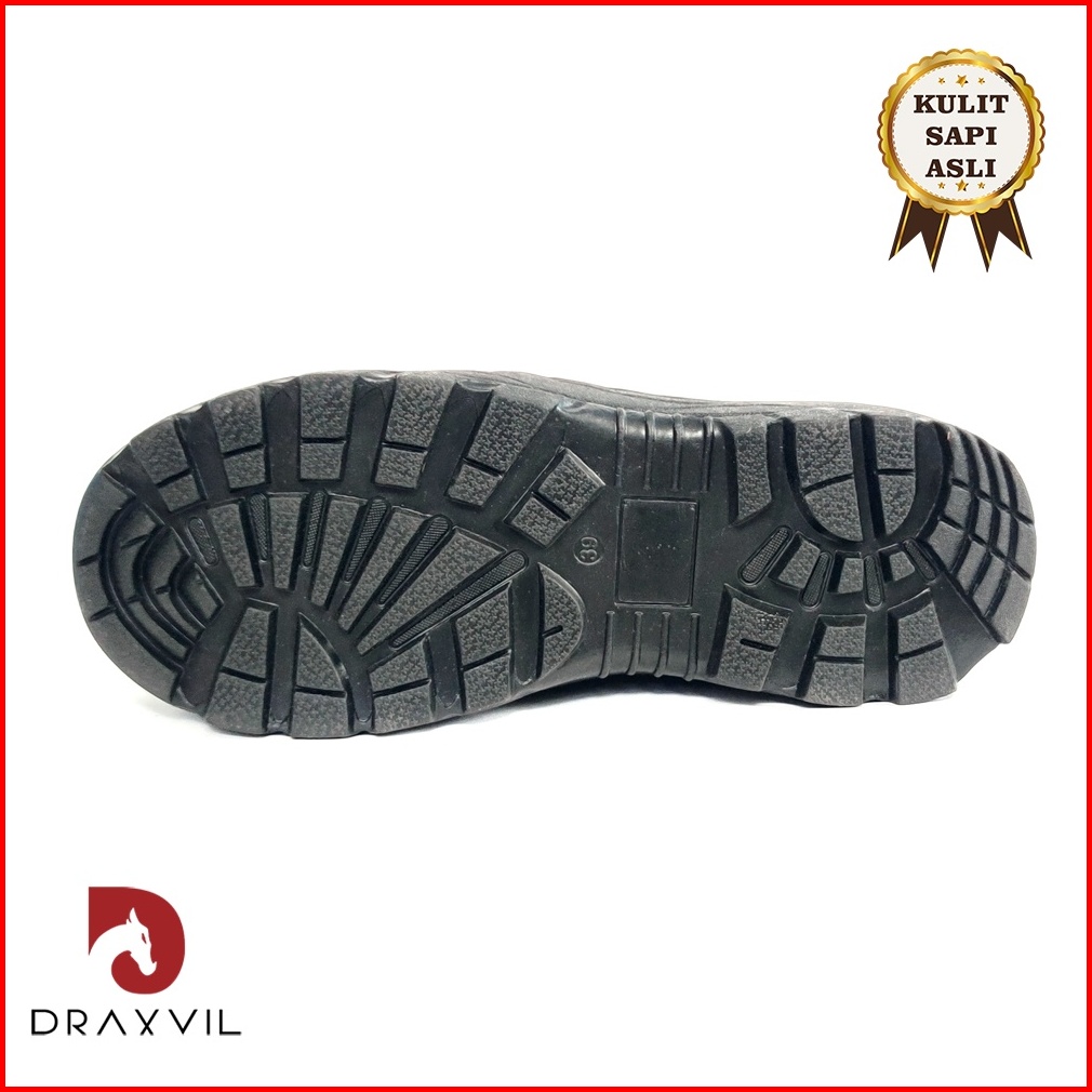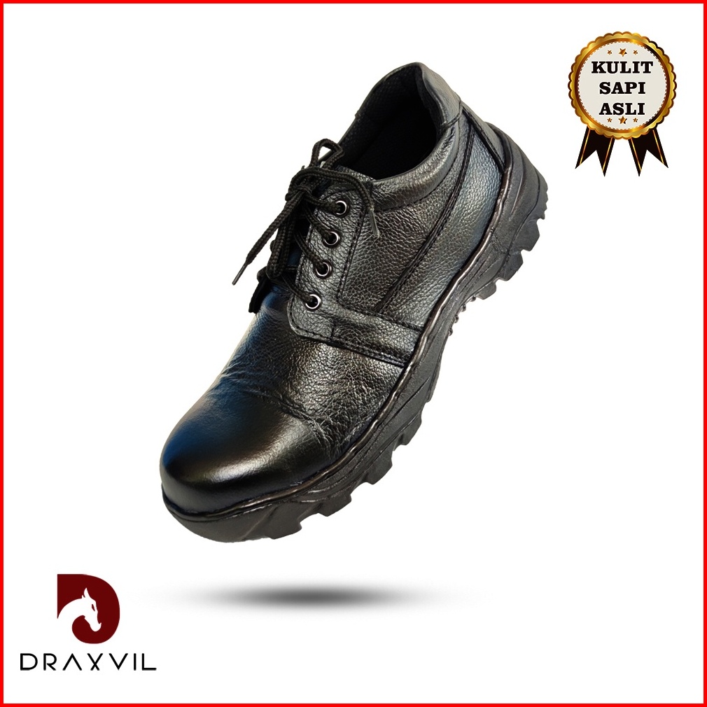 Draxvil - Sepatu Safety Kulit Sapi Asli Ujung Besi Tali Pendek