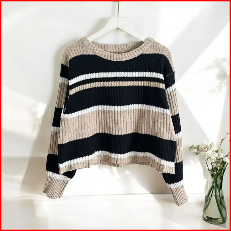 Azalea Sweater Rajut Crop Atasan Wanita Motif Bergaris Tebal Korean Style
