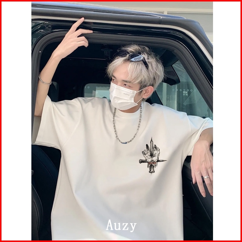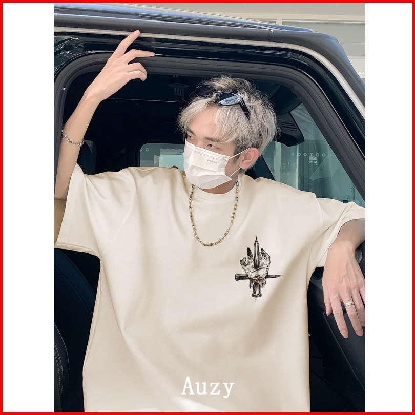 Auzy Persilangan Gaya Hip-hop Amerika Kaos Pria Wanita T-shirt Baju Oversize T Shirt Distro