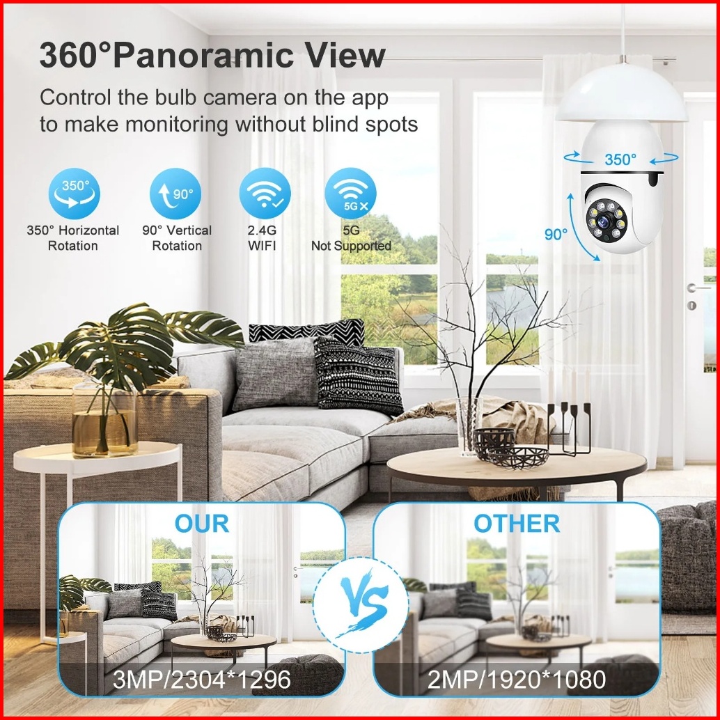 Camera Cctv Pro Cctv Kamera Ip Kamera Cctv Bulb Hd 8mp Wifi Lampu 360 Ptz Cctv Dengan Fungsi Penglihatan Malam