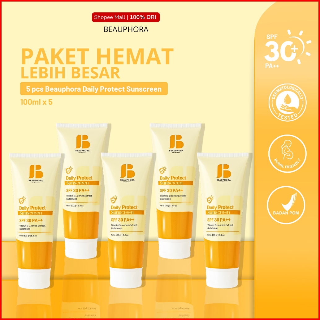 Spesial Bundling 5 Beauphora Daily Protect Sunscreen Tone Up Cream Pencerah Glutathione