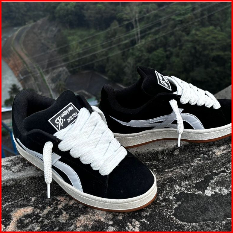 Sepatu Sole Bawahan Decit Berdecit Sb Marrabbuka Warna Hitam Classik Retro Suede Aktif Tali Gemuk
