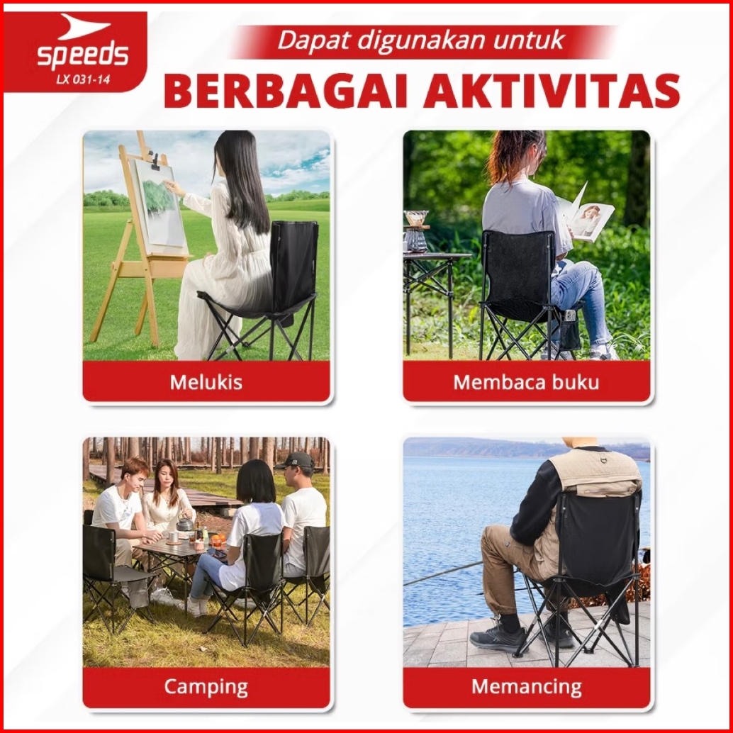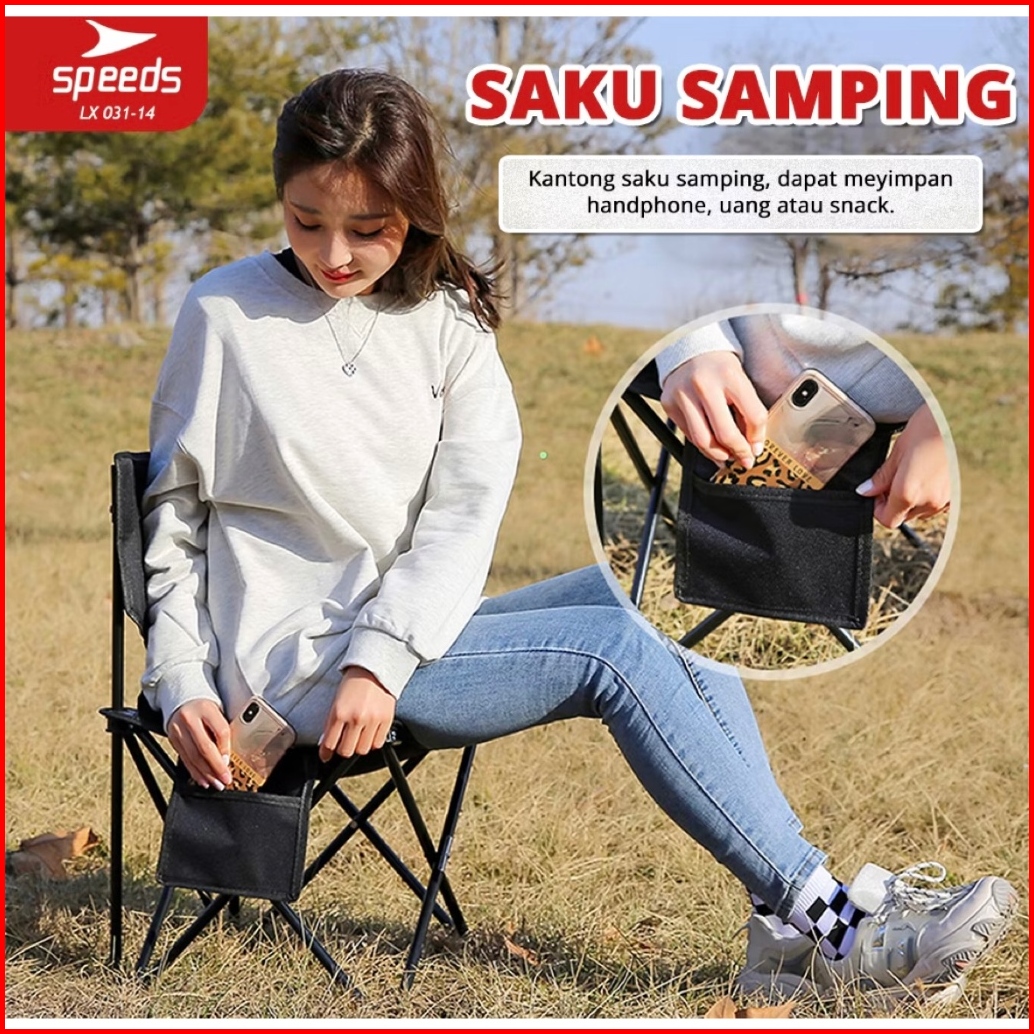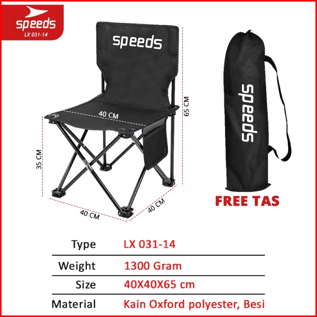 Speeds Kursi Lipat Outdoor Hitam Camping Portable Bangku Folding Chair Gunung Kemah Mudah Dilipat