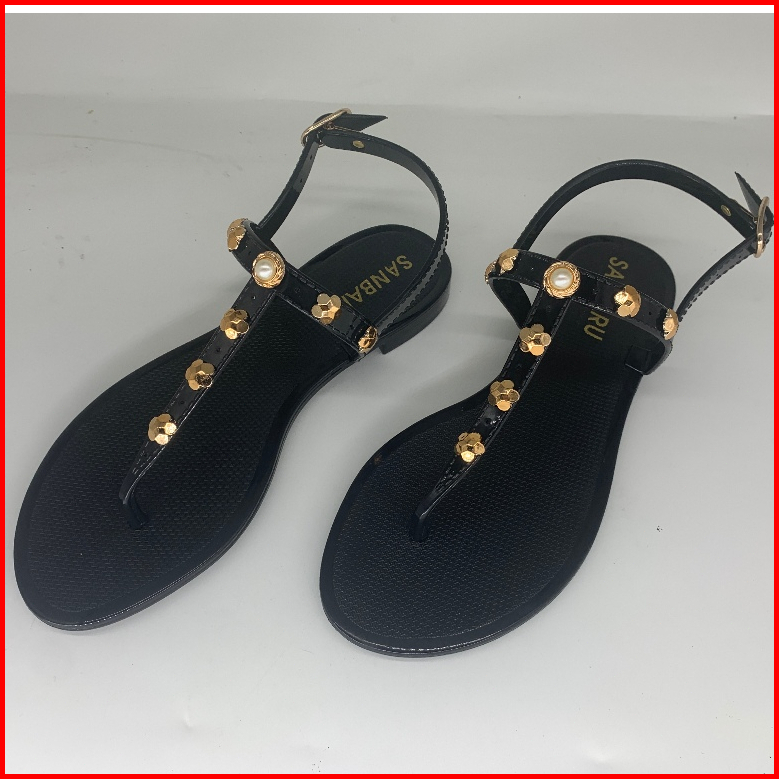 Komin- Sandal Buatan Tangan Asli Wanita Teplek Sepatu Kristal Sepatu Wanita Kasual Wanita Dihiasi Bunga Sandal Sandal El