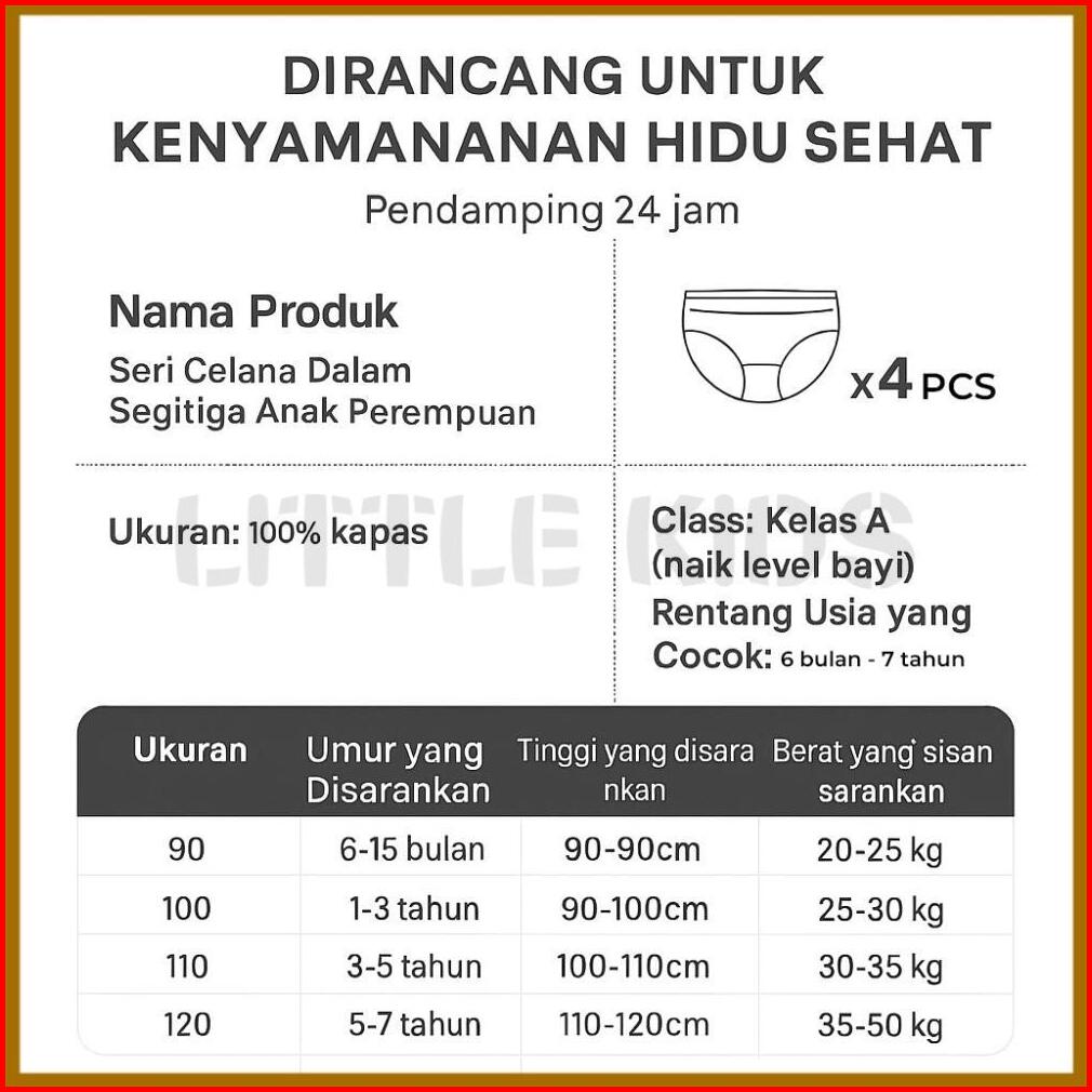 Little Kids 4 Pcs Celana Dalam Bayi Anak Perempuan Bahan Katun Lembut Motif Kartun Nyaman