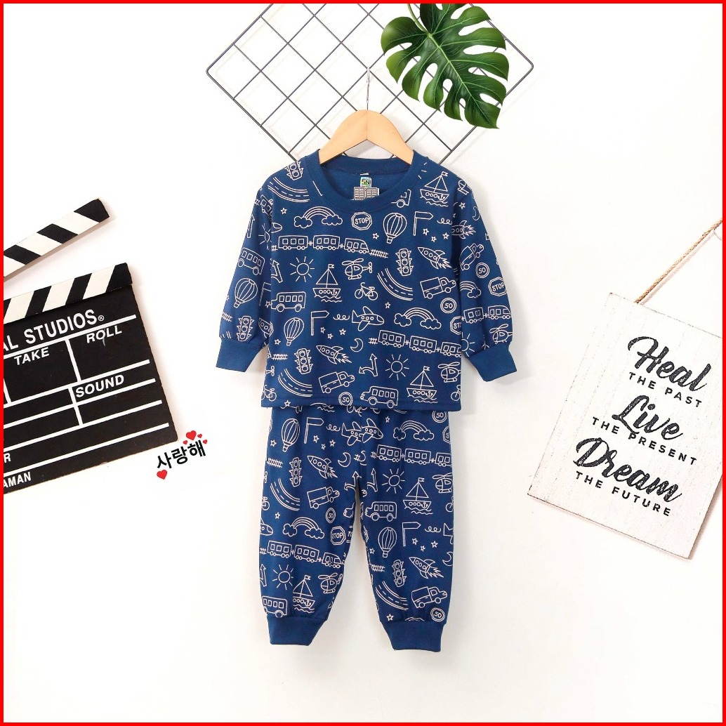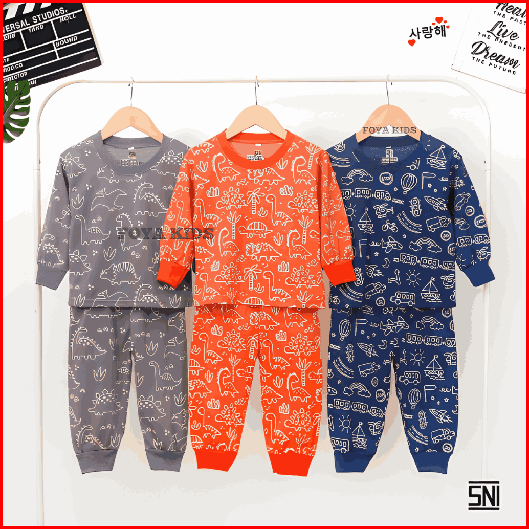 Foya Kids - Setelan Pajamas Premium Fullprint Anak Laki Laki Perempuan Dino Mobil Pesawat Setelan Anak Usia 0-6 Tahun