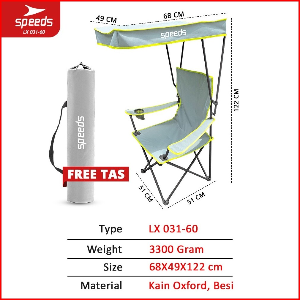 Speeds Kursi Lipat Dengan Kanopi Portable Canopy Folding Chair Camping Hiking Lx 031-60