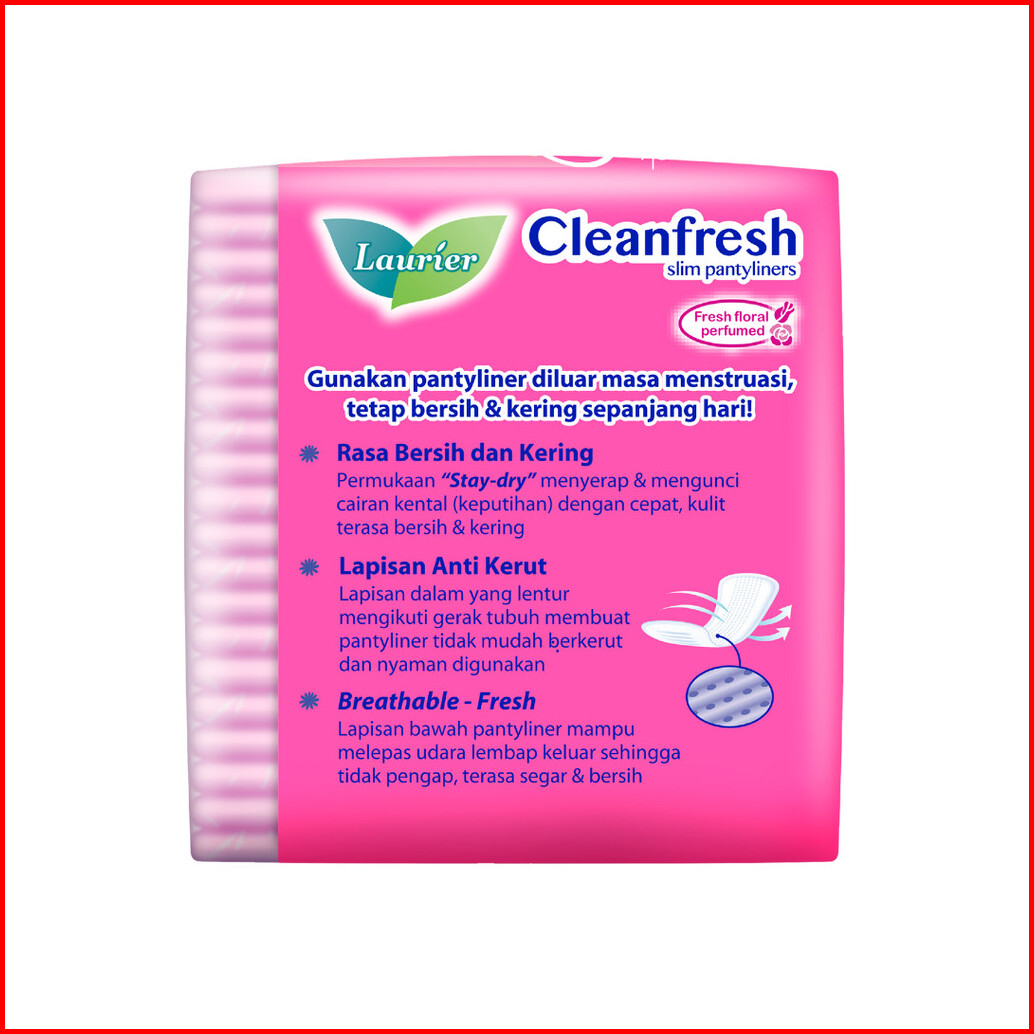 Laurier Cleanfresh Pantyliner Keputihan Breathable Fresh Floral Perfumed -tetap Bersih Ekstra Kering Isi 20 Buah Twinpac