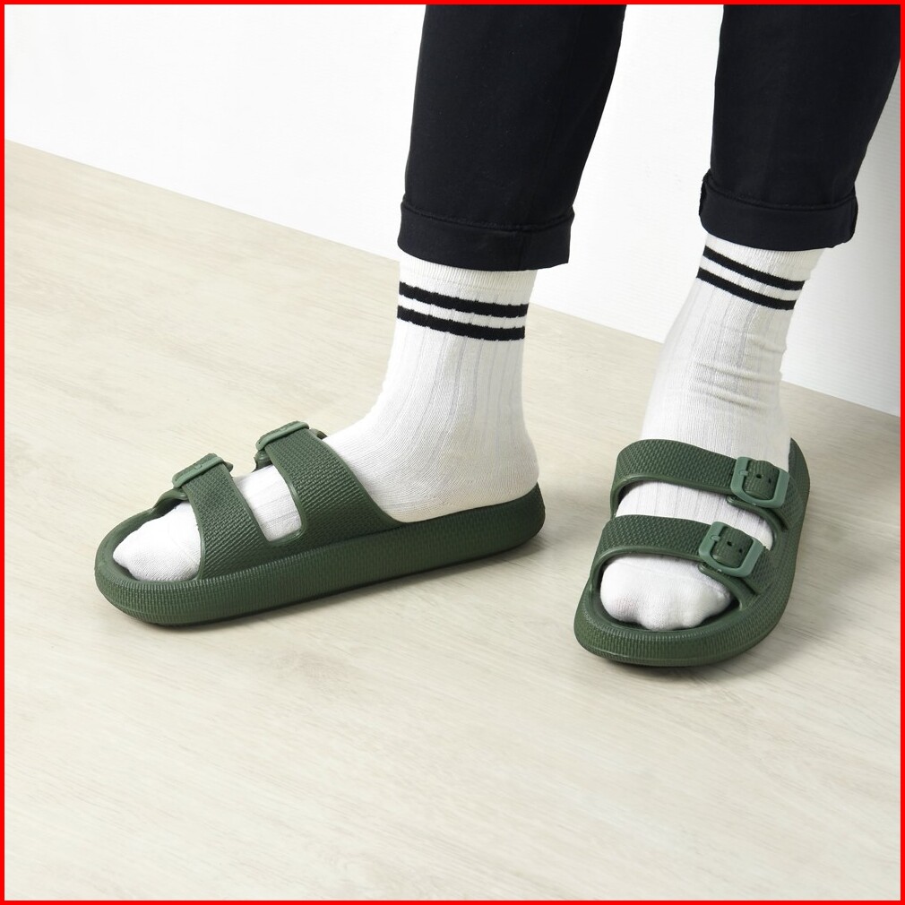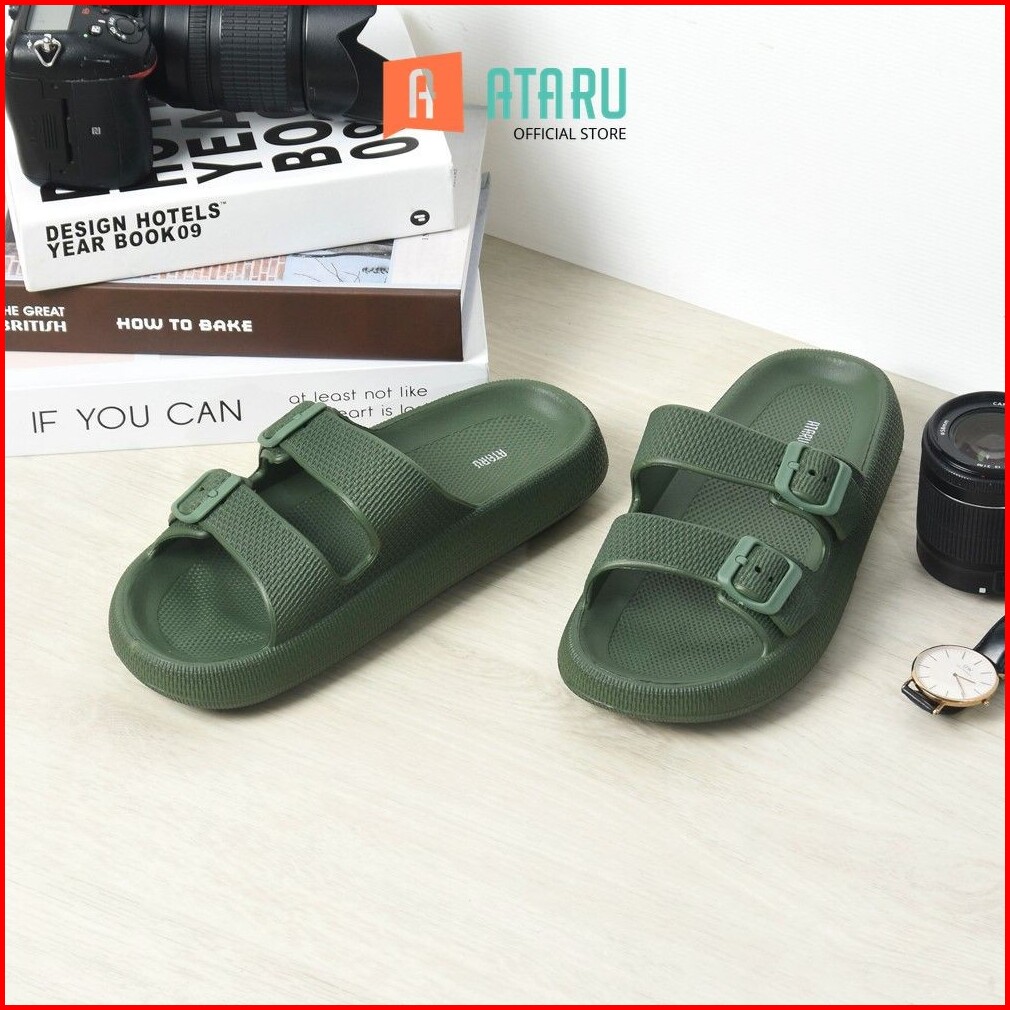 Ataru Ukuran 40 41 Sandal Double Strap Thick Slides - Hijau Sendal Alas Kaki Slide Cewek Cowok Fashion Wanita Dan Pria