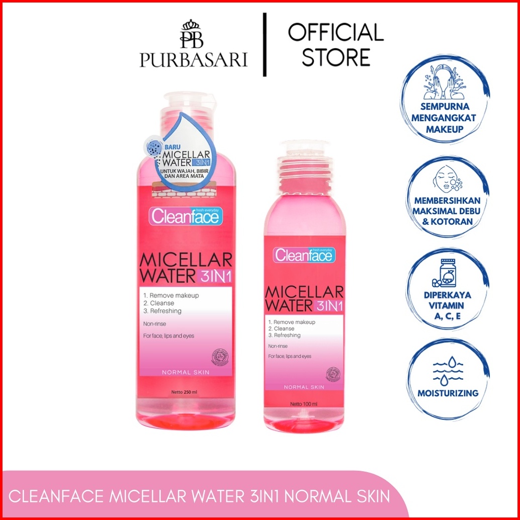 Cleanface Micellar Water 3in1 For Normal Skin 250ml Pembersih Wajah Pembersih Makeup Waterproof