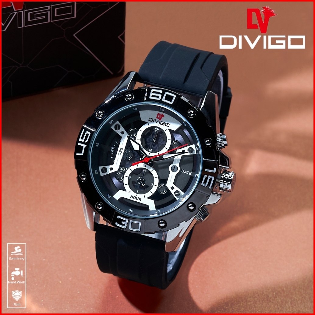 Jam Tangan Pria Divigo Original Dv-7737-2 Strap Rubber Tanggal Aktif Tahan Air