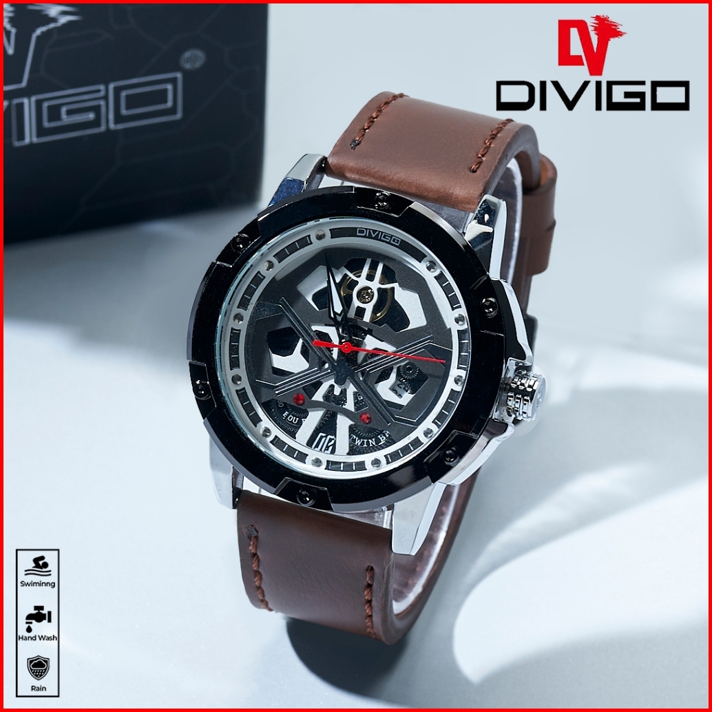 Jam Tangan Pria Divigo Original Dv-7015-2 Strap Kulit Tanggal Aktif Tahan Air