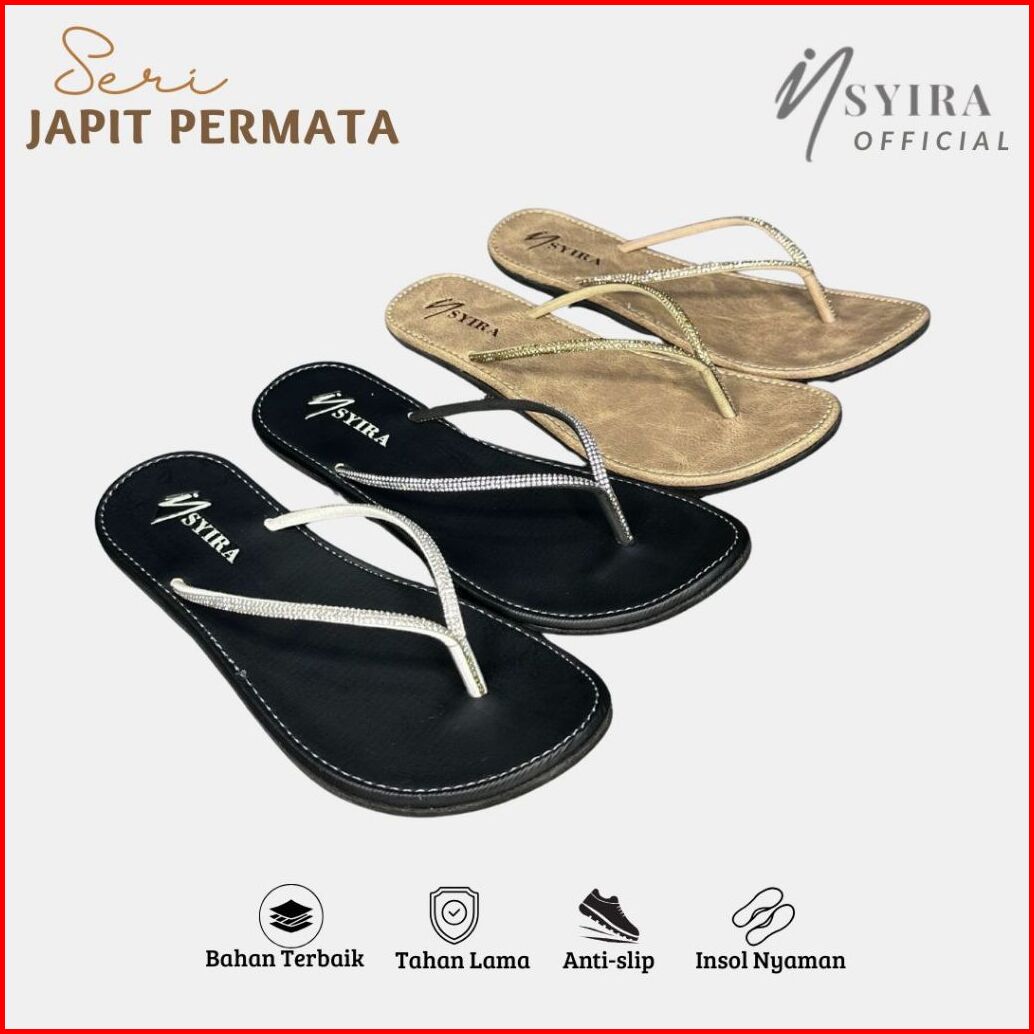 Insyira - Sandal Wanita Japit Permata Sol Karet Anti Slip Sandal Teplek Wanita