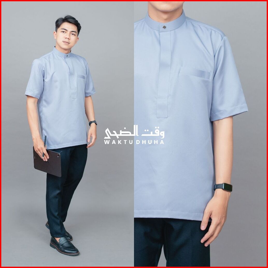 Waktu Dhuha - Atasan Koko Muslim Pria Lengan Pendek Hidden Zipper