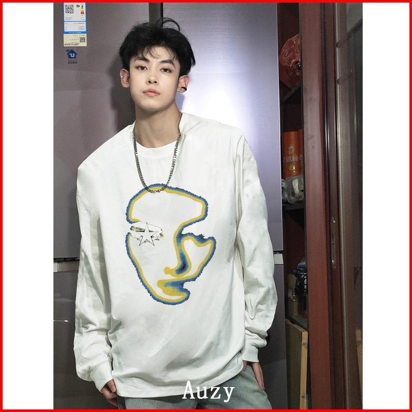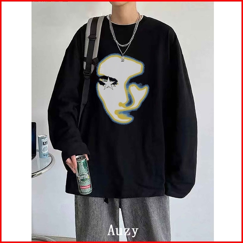 Auzy Retro Amerika Meringis Kaos Pria Wanita Atasan Lengan Panjang T-shirt Skena Baju Oversize T Shirt Distro Original 1