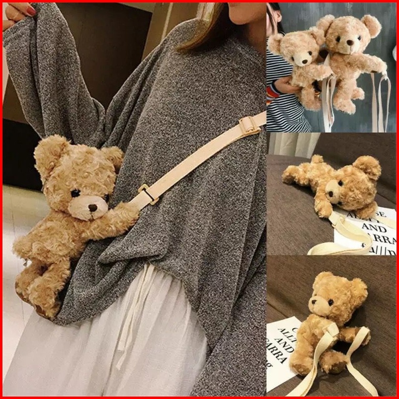 Tas Beruang Tedy Bear Bulu Lucu Imut Gemoy Ransel Wanita Baru Boneka Mewah Ransel Kasual Tas Kepribadian Kartun Beruang