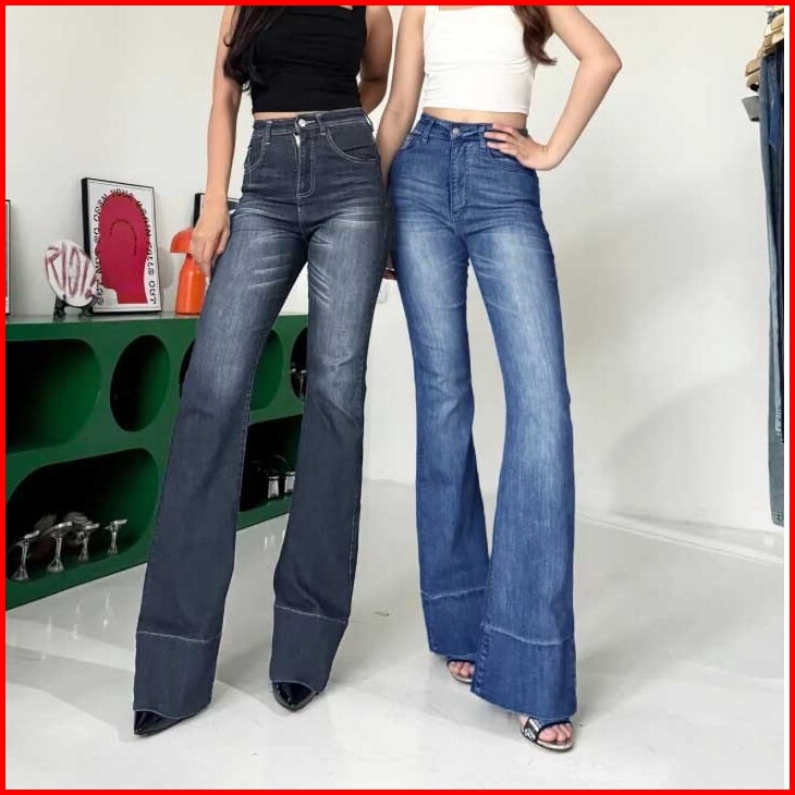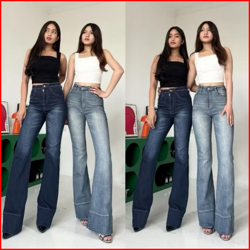 Celana Jeans Cutbray Wanita Kekinian Lipat Lebar Highwaist Cutbray Jeans Stretch