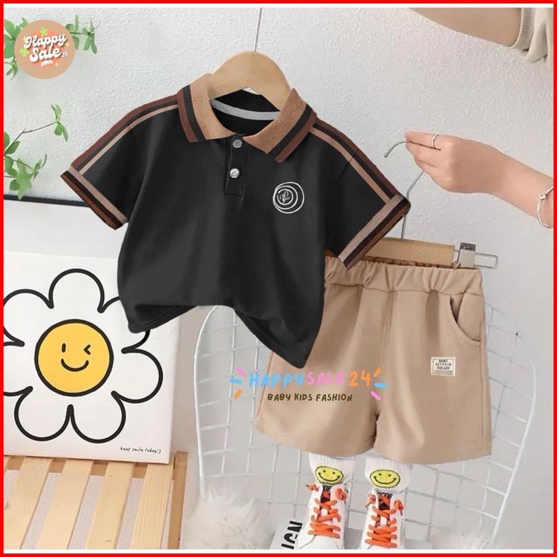 Setelan Anak Laki Laki Perempuan Polo Celana Pendek Santai Baju Anak Casual Kekinian Usia 1-5 Tahun