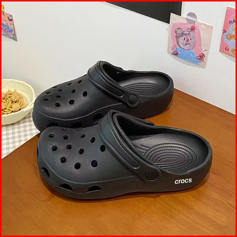 Croc S Sandal Wanita Korea Model Datar Stylish Dan Nyaman Bahan Eva Karet Anti-slip