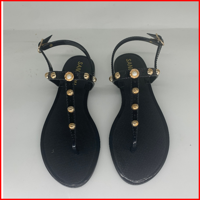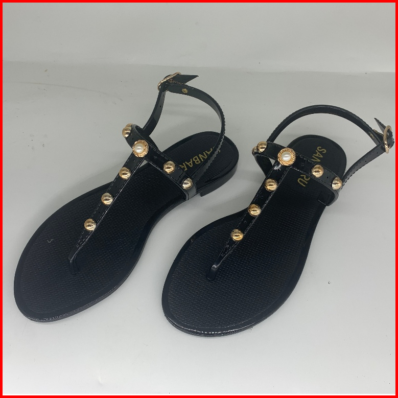 Komin Sandal Karet Mewah Platform Sandal Beads Manik Wanita Kekinian Hiasan Manik-manik Sendal Jepit Original Wanita San
