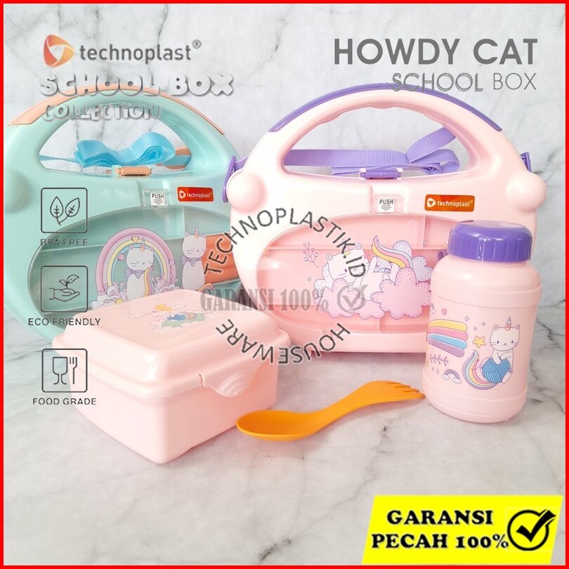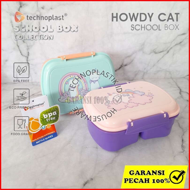 Technoplast Howdy Cat Lunch Box Kotak Makan Bekal Kreatif Lucu 440ml