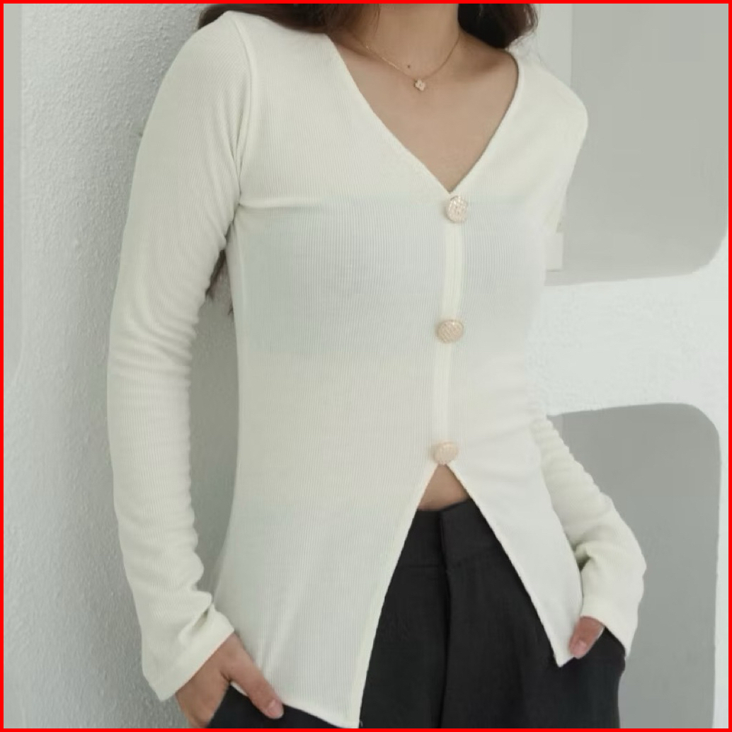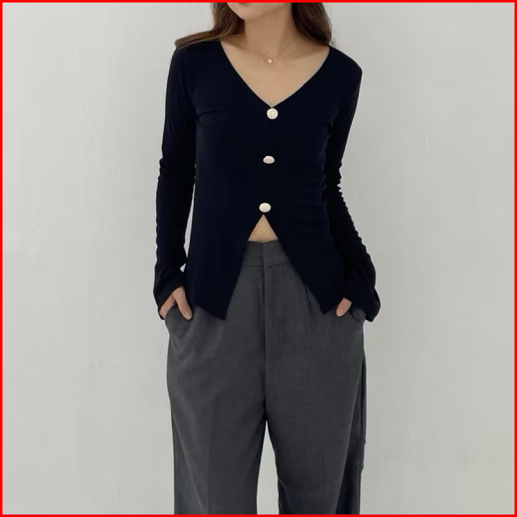 Jane Cardigan Crop Rajut Atasan Baju Wanita Lengan Panjang Press Body Korean Style