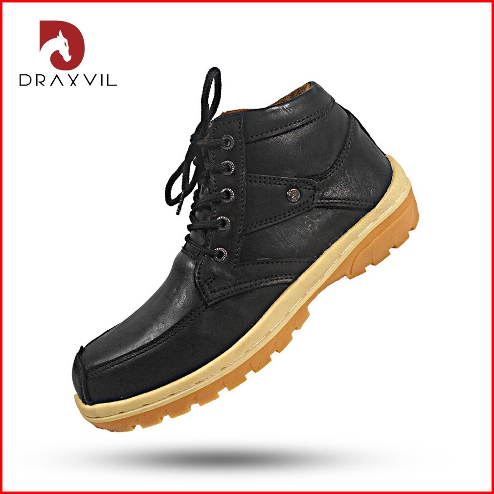 Draxvil Kulit Sapi Asli - Sepatu Pria Kulit Sapi Asli Sepatu Touring Safety Sepatu Boot Hiking