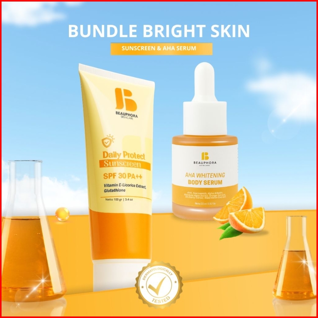 Spesial Package Beauphora Daily Protect Sunscreen Aha Whitening Body Serum Set Brightening