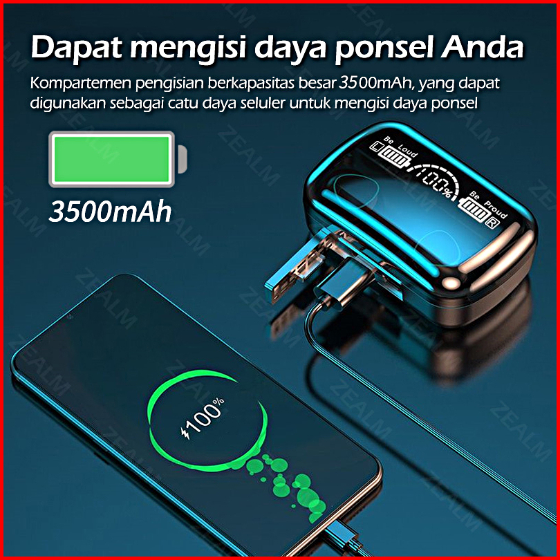 M10 Plus Powerbank 3500mah Tws Bluetooth 5.1 Full Bass Hifi Stereo Sound Earphone Wireless Waterproof Super Dengan Power