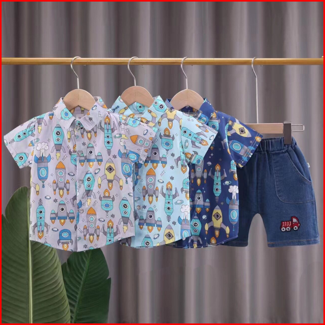 Angenius Setelan Anak Laki Laki Printing Spacecraft Usia 6 Bulan - 3 Tahun