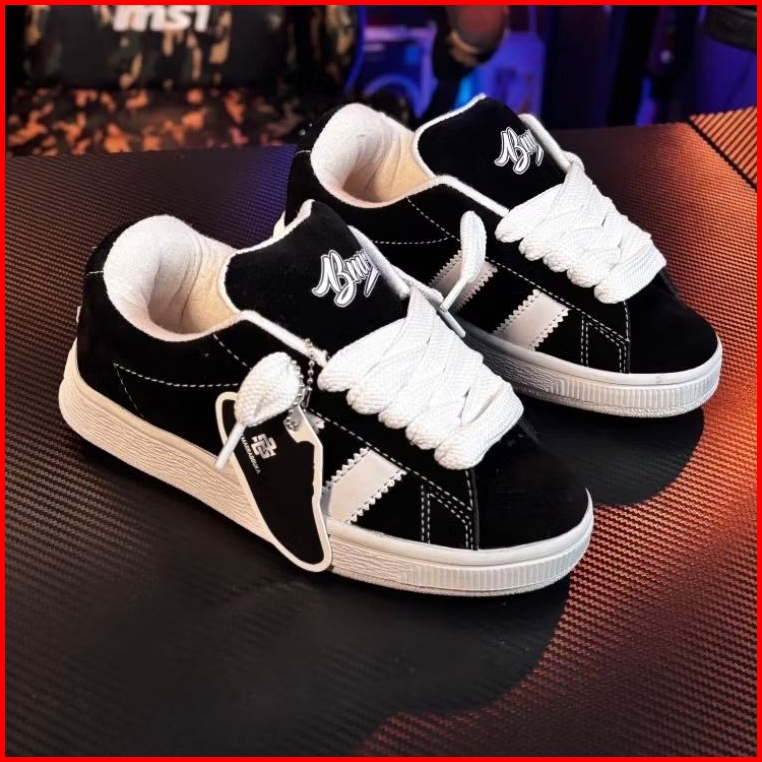 Sepatu Sneaker Skate Terbaru Sb Marrabbuka Warna Full Hitam Classik Terbaru Sole Busa Tali Lidah Gemuk Gendut Suede Loka