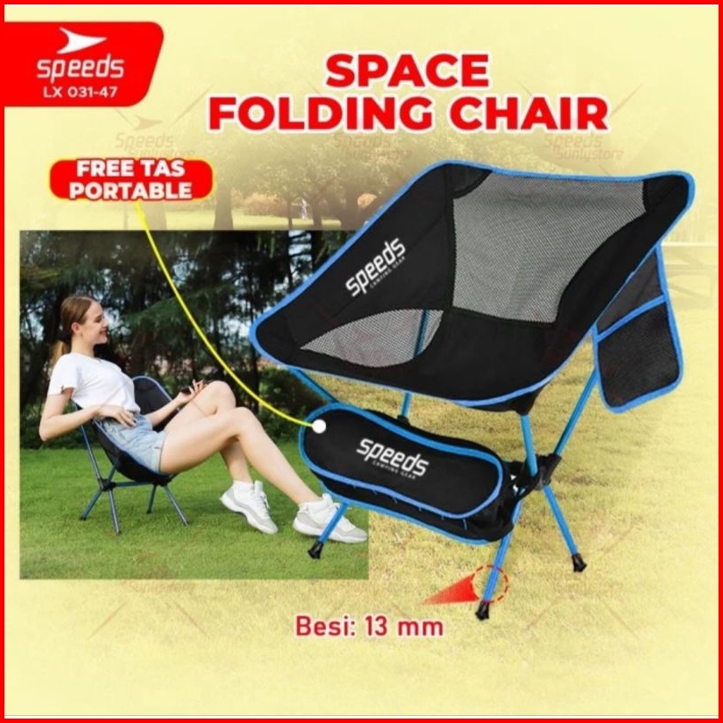 Speeds Kursi Lipat Jaring Keranjang Portable Outdoor Mancing Camping Folding Chair Biru