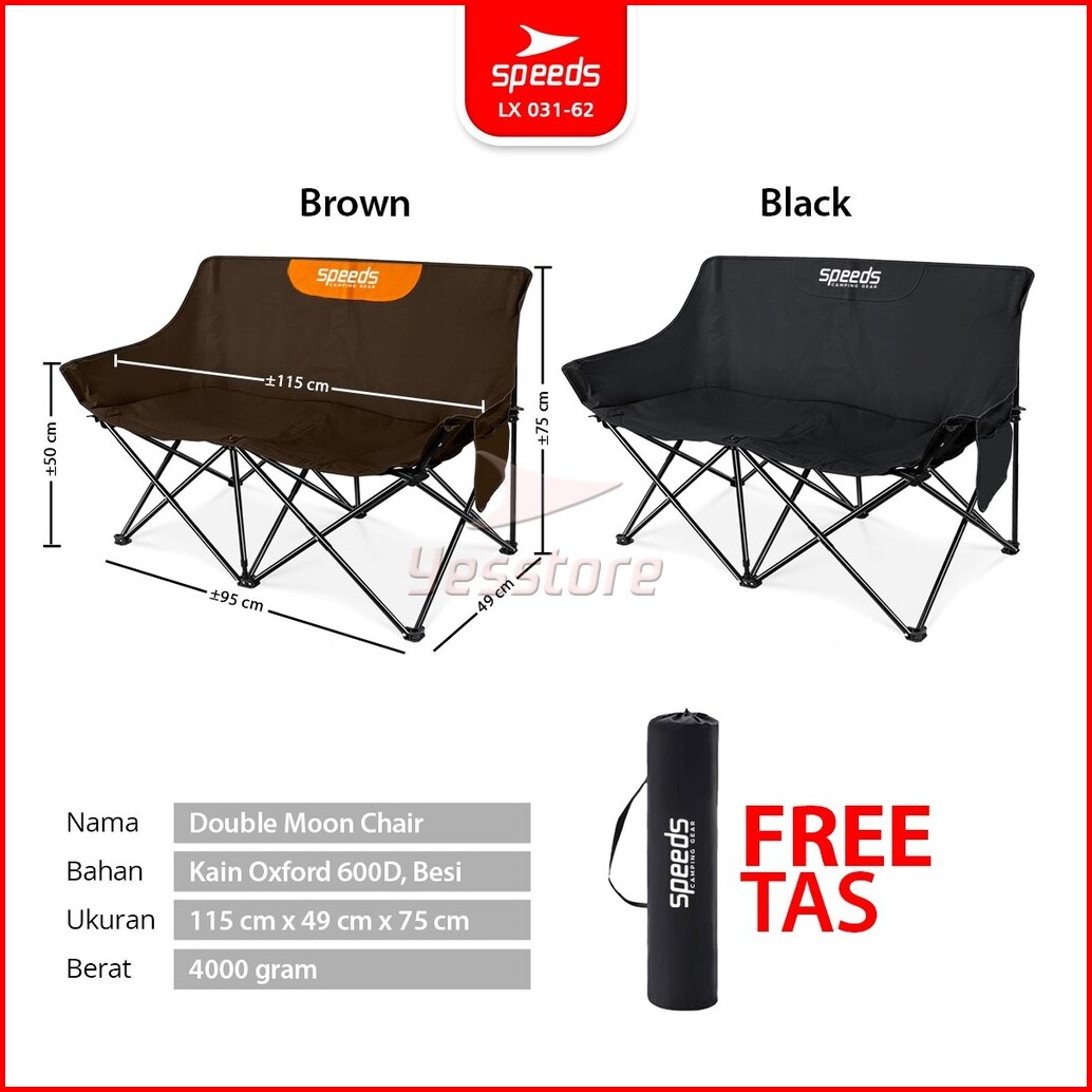 Speeds Kursi Lipat Double Moon Chair 2 Orang Kursi Dobel Lebar Bersantai Keluarga Camping Outdoor 031-62