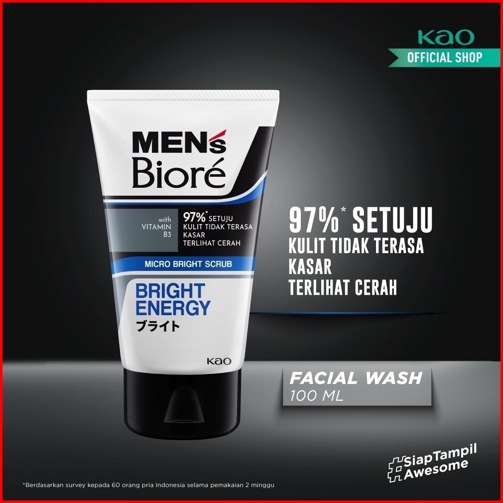 Men S Biore Micro Scrub Sabun Muka Pria Untuk Kulit Kusam Bright Energy Eksfoliasi 100 Gr - Facial Wash