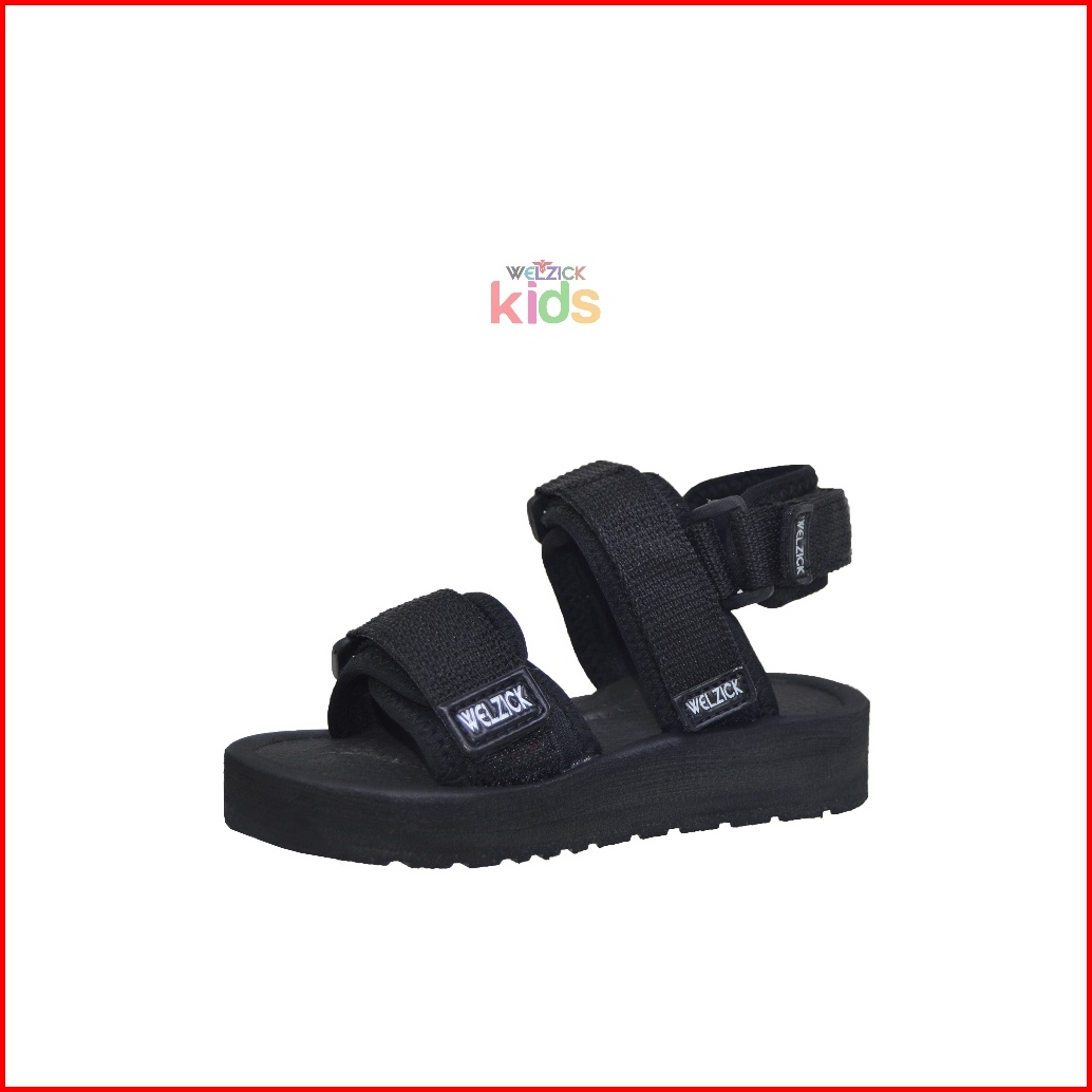 Welzick - Sandal Gunung Anak Balita Laki-laki Perempuan Ringan Empuk - Semeru Kids Full Black