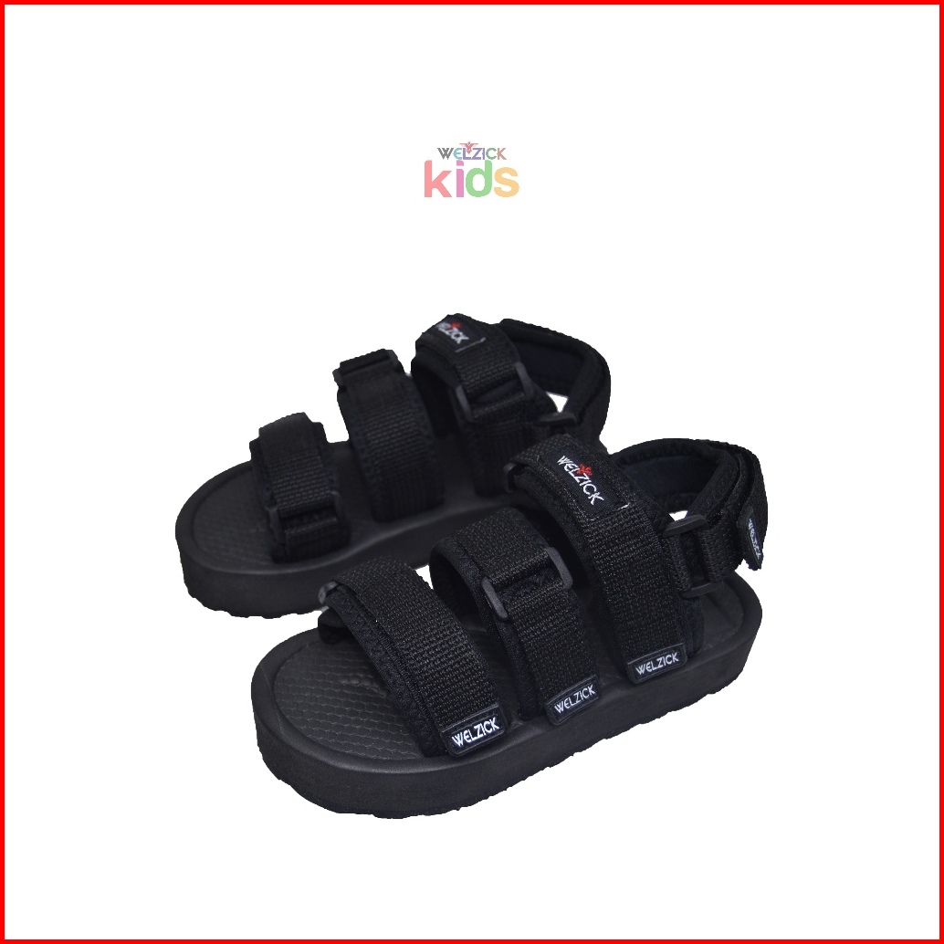 Welzick - Rainier Kids - Sandal Gunung Anak Laki-laki Perempuan Ringan Empuk - Full Black