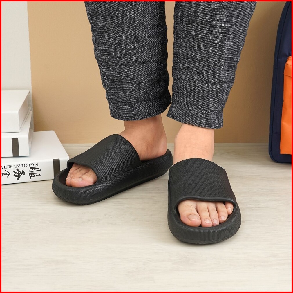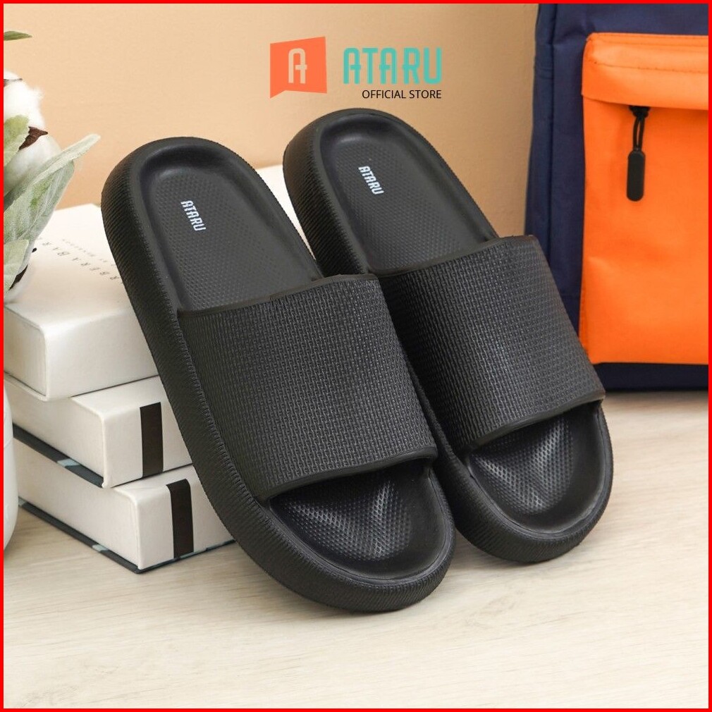 Ataru Ukuran 35 36 Sandal Karet Thick Slides - Hitam Slipper Sendal Kasual Outdoor Indoor Alas Kaki Cewek Cowok Stylish