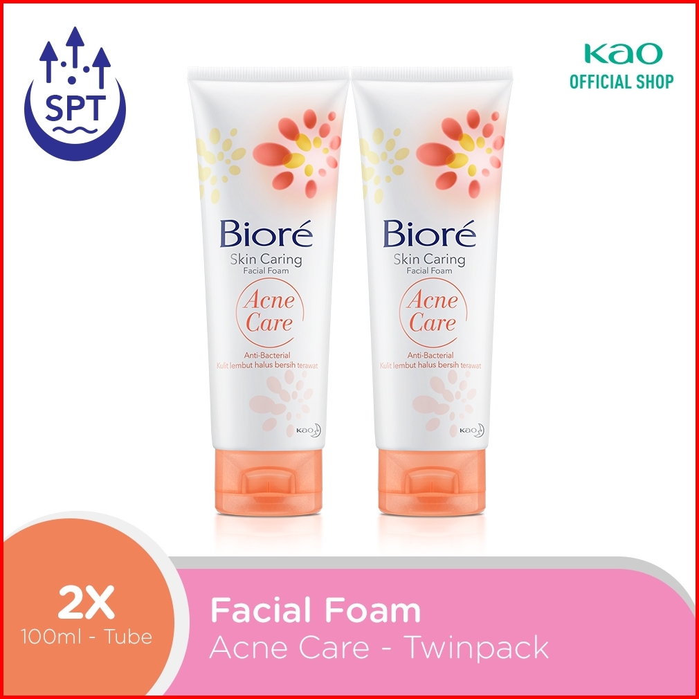 Biore Skin Caring Sabun Cuci Muka Untuk Kulit Berjerawat Acne Care Anti Bakteri 100 Gr X 2